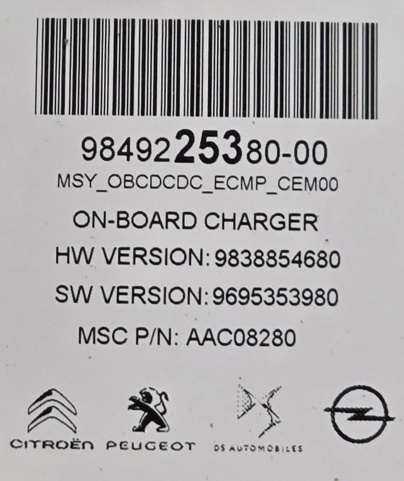 OBC BATTERY CHARGER ABOVE ELECTRIC MOTOR/ ON-BOARD CHARGER/ (0000384000)