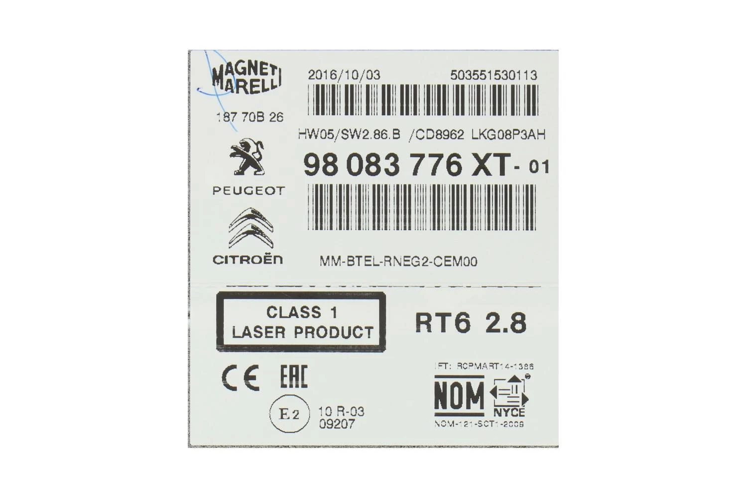 | Stellantis | 98083776XT |